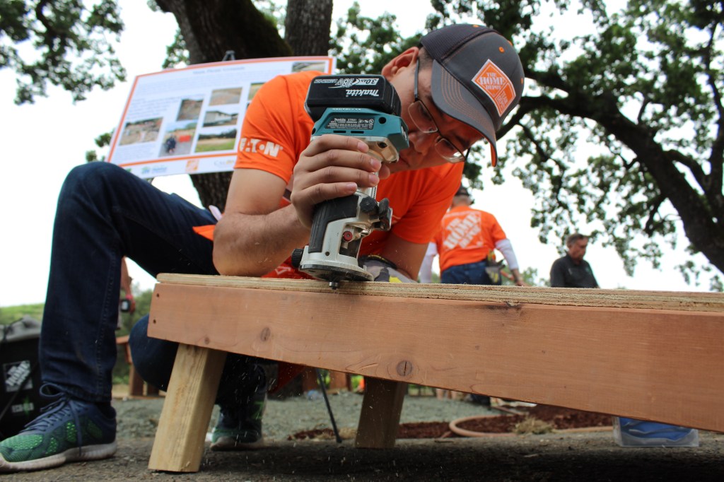 Tim Henry, another veteran and Home Depot employee, belongs to the Veterans of Foreign Wars organization in Benicia. He served aboard the USS Trenton in the Persian Gulf during the Desert Shield and Desert Storm campaigns. “We’re always involved with veterans organizations,” he said. “It’s important to me because I know what it’s like to serve.” He added, “Another reason I am here today doing this is that being a combat veteran, I could end here one day: it’s important to give back.”