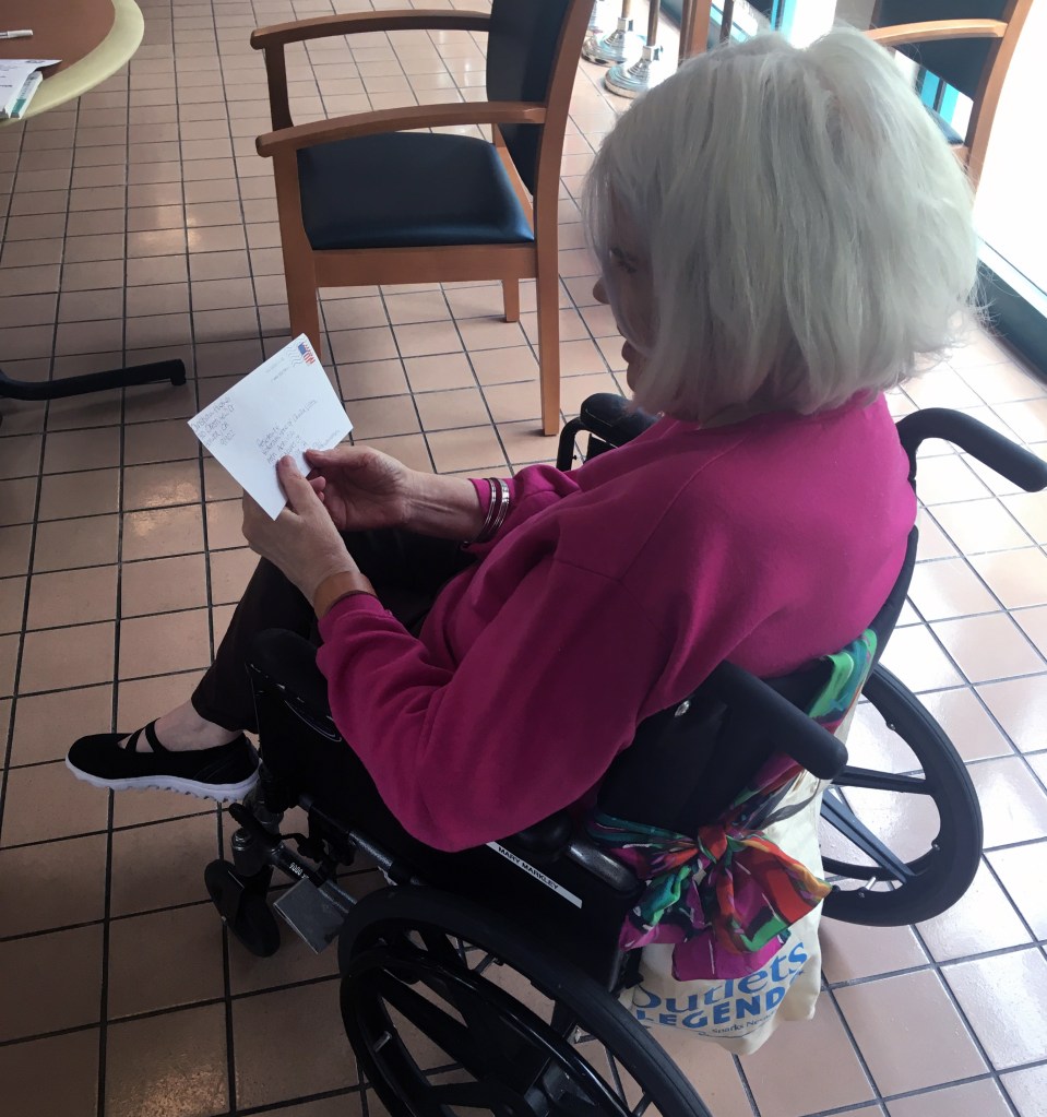In this instance, the Home’s veterans opened letters from people they’d never met and might never meet. Letters written to brighten their day. Letters written to say “Thank you!” for serving their nation. Letters written, in some small way, to make a difference in the veterans’ lives.