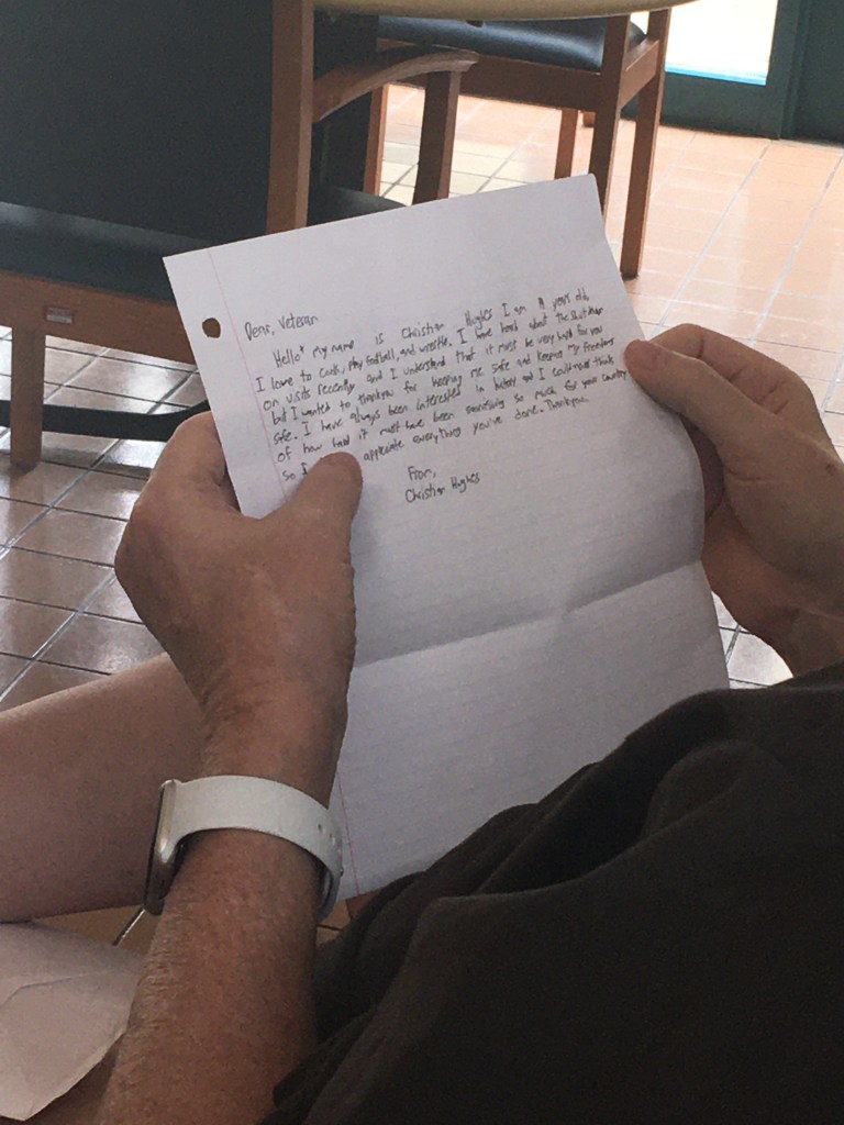 The veterans at the Chula Vista Home were moved and appreciative when they read them on Tuesday, Campbell said, and even more so when they realized many of the letters came from teens.