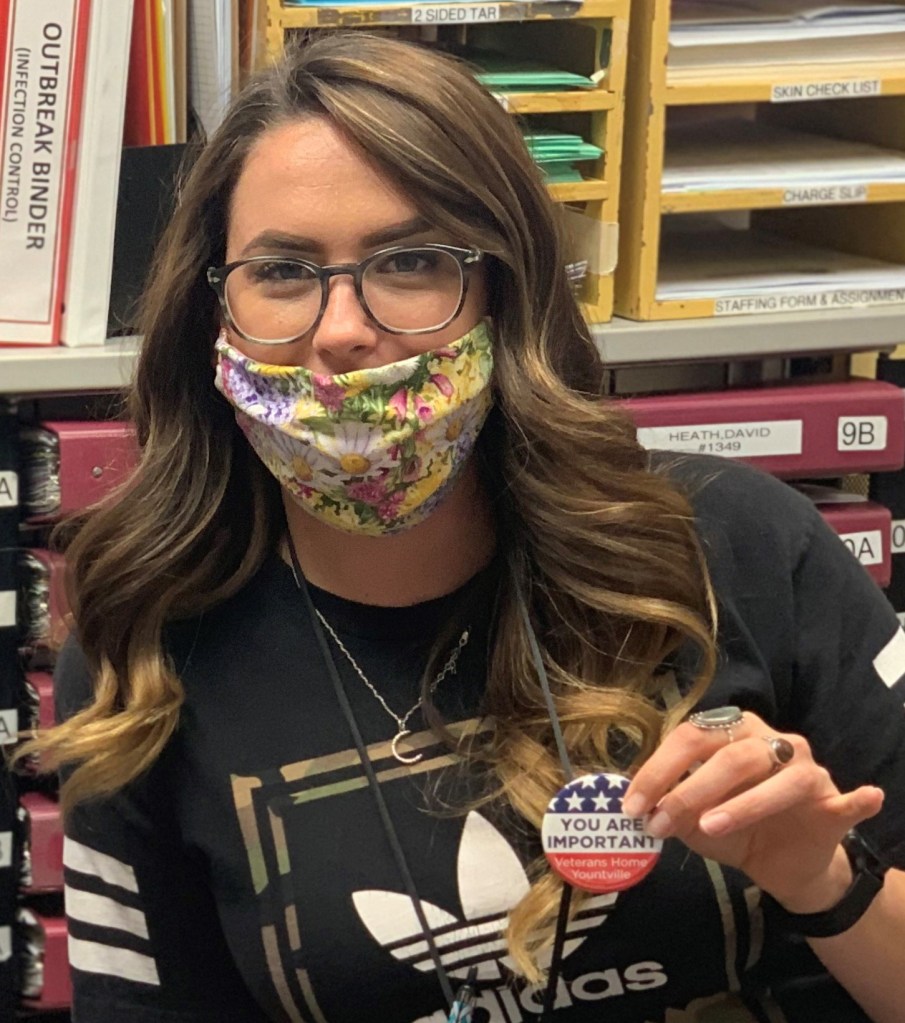 Echo Connell, the Home’s quality assurance performance improvement coordinator, took Peake’s words to heart. A 35-year employee at the Home, Connell recognized that the staff would be facing uncharted and dangerous waters in trying to keep the coronavirus out of the Home – protecting the veterans and residents who live there, and themselves. She’d already been thinking about ways to bolster the camaraderie and morale. The “You Are Important” message also was in the subject line of an e-mail she received from Peake.