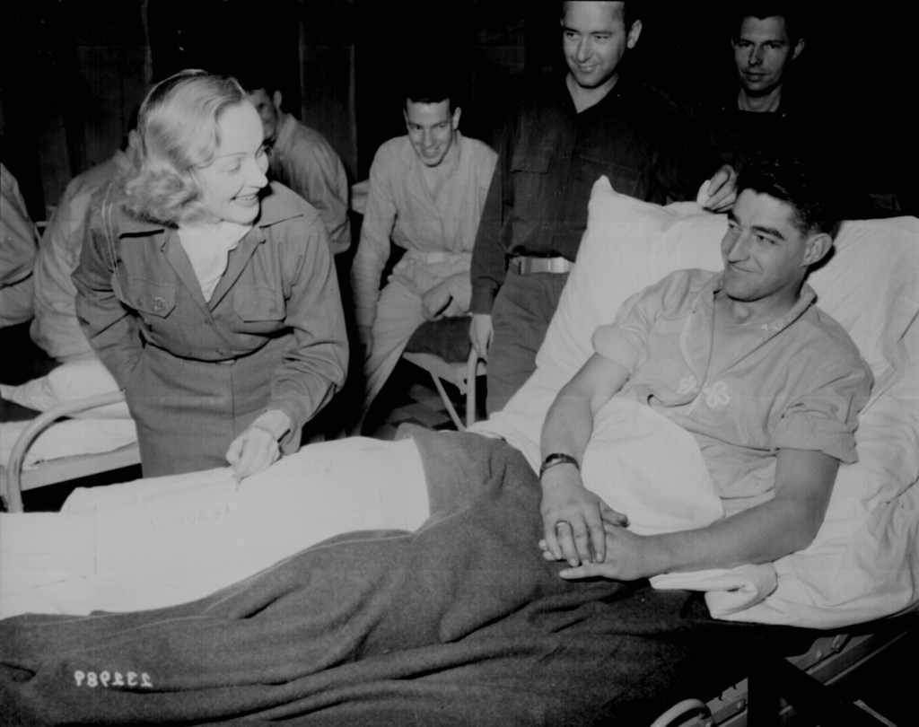 Dietrich also added her star power to war bond drives, and, in essence, became the Allies’ counterpart to Japan’s propaganda queen, “Tokyo Rose.” Dietrich worked with the U.S. Office of Strategic Services (predecessor to the CIA) to record albums intended to undermine Hitler and the Nazis in her native Germany. The Nazis, in fact, banned her song “Lili Marlene,” which German troops loved. She managed to cause many German citizens to question or turn against the Nazis, who had proclaimed her a traitor. According to the USO, a U.S. Bombing Survey “discovered that the programs were just as devastating to German morale as an air raid.”