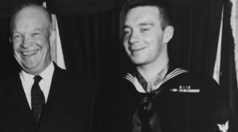 - Keith Smothers (left) with his father Ray and a photo of Keith’s late father-in-law, Navy Commander Tommy Gatewood.