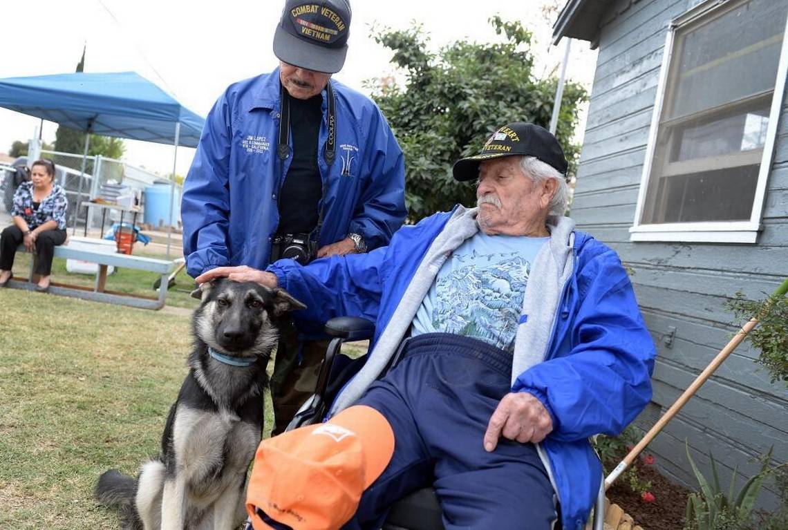 - Chumash tribe descendants Stanley Leighton, left, and Shadowdancer Melendez, center with Ventura Veterans Home Administrator Julian Bond. Photo by Timothe Alaniz.