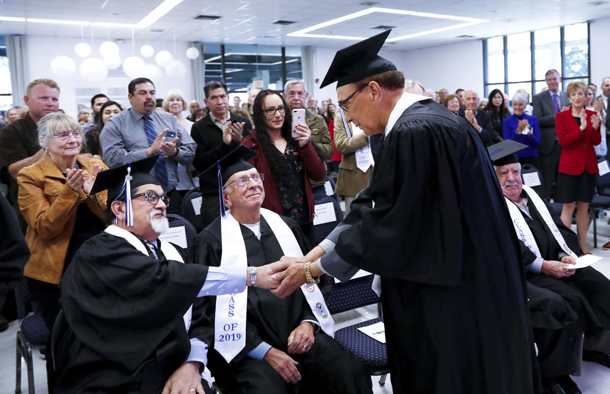 - U.S. Marine Coprs Vietnam War veteran Timothy Basquez, 64, reacts after receiving his high school diplomas during the 2017 Operation Recognition at Moreno Valley Conference Center in Moreno Valley on Monday, Nov. 13, 2017. (Photo by Watchara Phomicinda, The Press-Enterprise/SCNG)