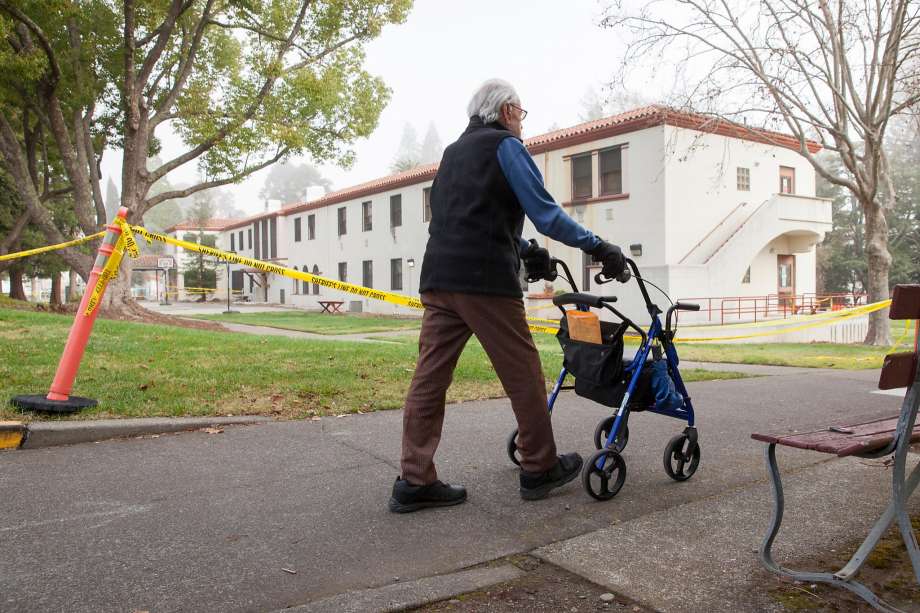 - The Veterans Home of California in Yountville began evacuating more than 1,000 residents and its staff Tuesday night, afterthe Nuns Fire drew closer to the area from Sonoma County. A fleet of Napa VINE buses and ambulances from four counties ferried men and women off the grounds, with many slated for an existing emergency shelter at the Napa Valley College gymnasium 10 miles south. (Photo courtesy Napa Valley Register/Howard Yune)