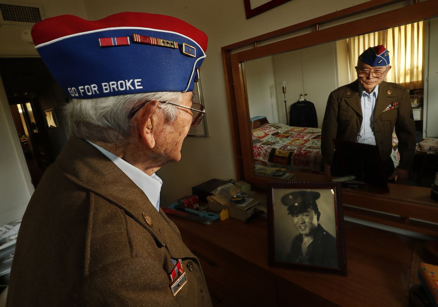 - Dale Cook, 91, of Brentwood, is photographed at his home in Brentwood, Calif., on Thursday, September 28, 2017. Cook is holding a signed photograph by Pulitzer prize winning Associated Press photographer Joe Rosenthal. Cook is president of the S.F. chapter of the U.S. Marine Corps Combat Correspondents Association, which will be delivering petitions to the Secretary of the Navy calling for a Naval ship to be named for photographer Joe Rosenthal, who snapped the iconic WWII photo of the U.S. service members raising the flag atop Mt. Suribachi on Iwo Jima. Cook was in Fox Company, 2nd Battalion, 23rd Marines of the 4th Marine Division. (Jose Carlos Fajardo/Bay Area News Group)